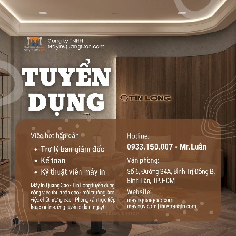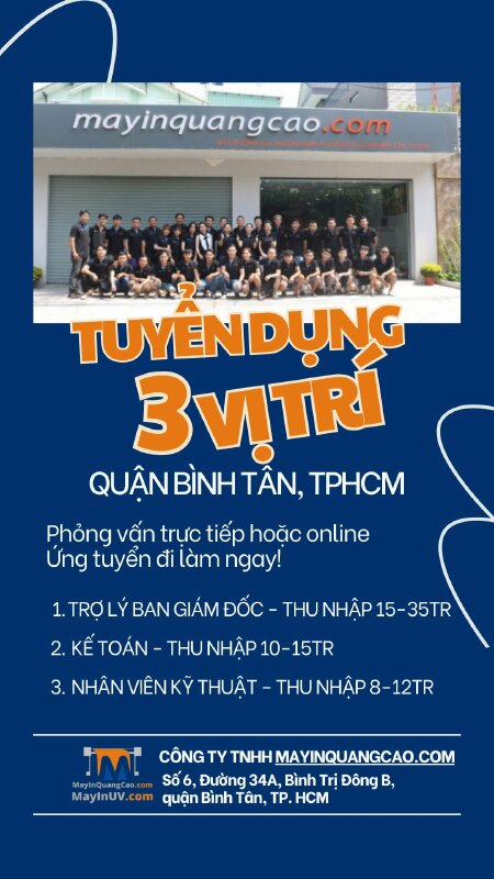 Tuyển dụng nhân viên Kỹ thuật máy in, Kế toán, Trợ lý giám đốc, Sale tại MayInUV.com trực thuộc Công ty TNHH MayInQuangCao.com
